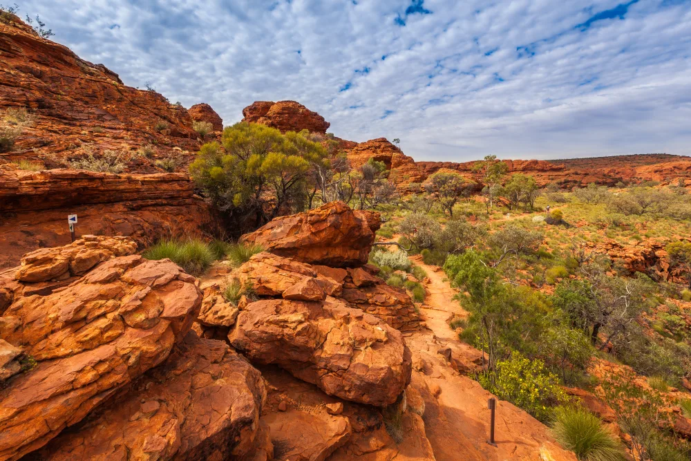 Summer brings a welcome drop in temperature to the Red Centre – ideal conditions for taking on the spectacular Kings Canyon Rim Walk. The trail begins with a steep but manageable climb – nicknamed Heart Attack Hill – before levelling out to reveal some of the most dramatic views in the Northern Territory.